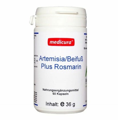 Zusammensetzung/Kapsel: Artemisia(Beifuß)-Gewürzextrakt (150mg), Vitamin C (250mg), Rosmarinextrakt (100mg), Gelatine (mit Farbstoff Titandioxid)