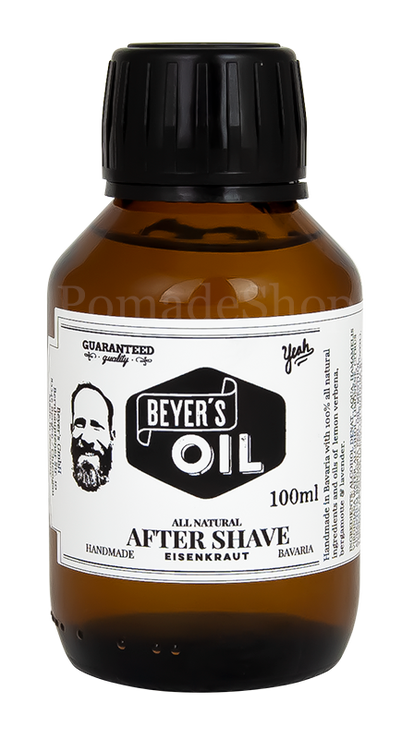 After Shave von Beyer's Oil aus natürlichen Inhaltsstoffen und dem Beyer's-typischen herb-frischen Duft. Von Hand hergestellt in Berchtesgaden, Bayern.