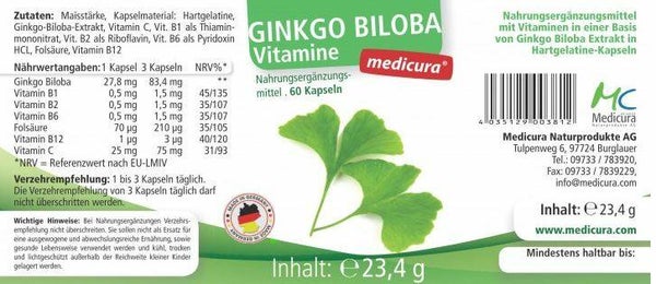 Ginkgo Biloba - Nahrungsergänzungsmittel mit Vitaminen