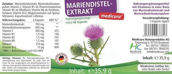 Mariendistelextrakt - Nahrungsergänzungsmittel mit Vitaminen